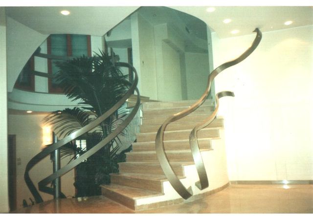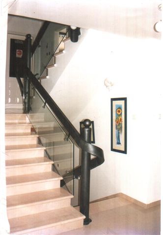 מעקה ברזל מינימליסטי שני שלבים זהים במקרה זה ,כפי שהוא בתמונה הוא עשוי משני פלחים 100/5 . ניתן לעצב וליצור מעקה דומה בסגנון אחר – יצירת פרופיל 100/40
